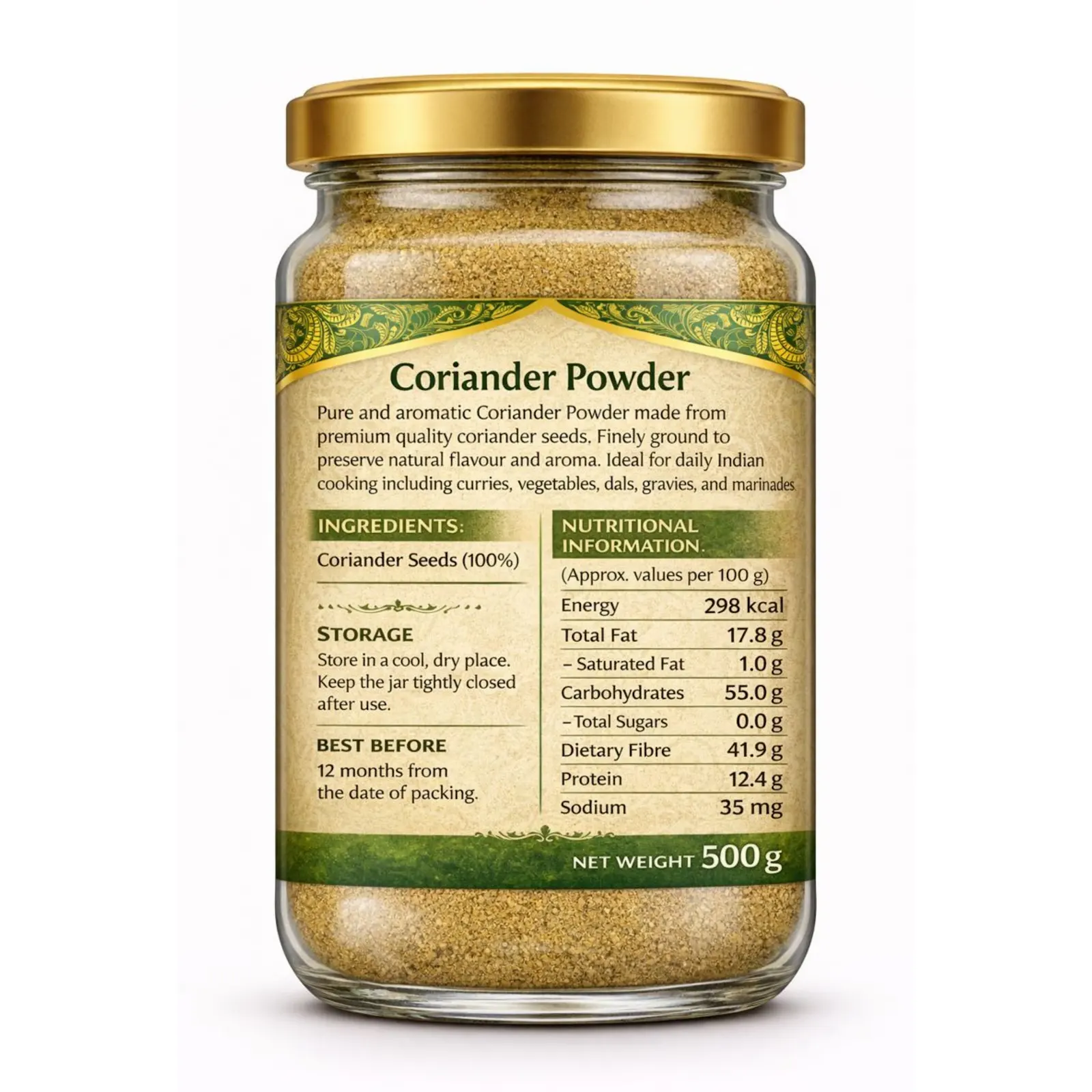 BalGokul Foods Coriander Powder is prepared using carefully selected coriander seeds that are hygienically cleaned and finely milled to preserve their natural aroma and taste. A staple spice in Indian kitchens, it enhances curries, vegetables, dals, gravies, marinades, and spice blends with its warm, earthy flavour. Packed under strict quality standards for long-lasting freshness.