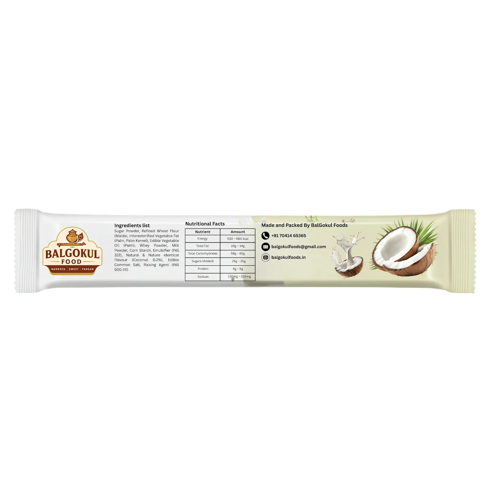 BalGokul Foods Creamy Coconut Cream Wafers offer a delightful combination of light, crunchy wafer sheets and rich coconut-flavoured cream filling. The subtle sweetness and creamy texture make it a perfect snack for coconut lovers. Ideal for tea-time, lunch breaks, or quick dessert cravings. Hygienically prepared and packed to retain freshness and flavour.