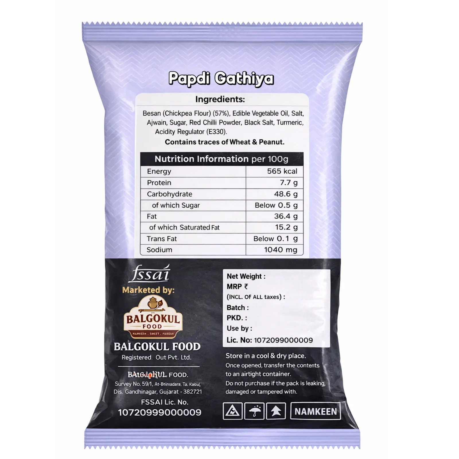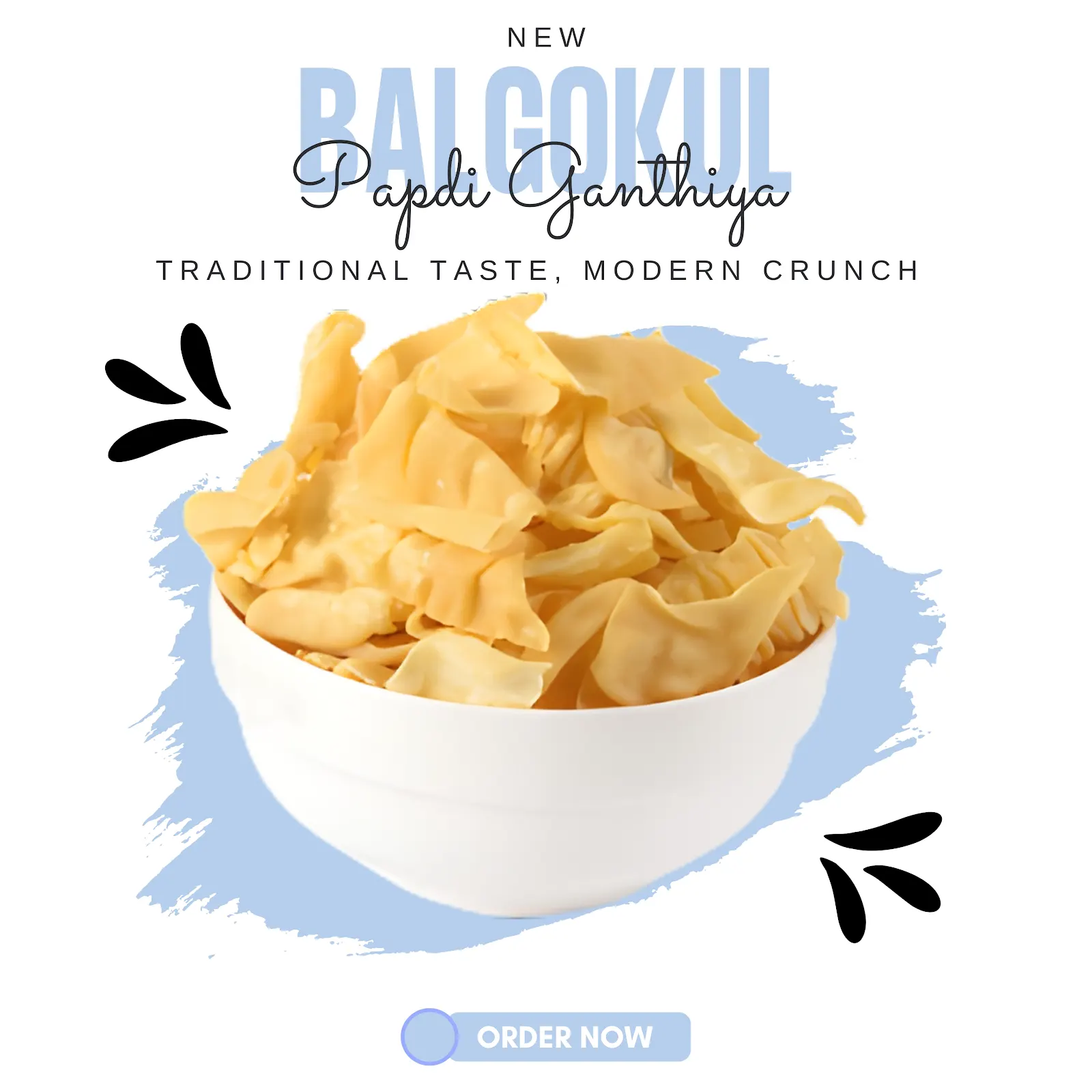 Experience the authentic taste of traditional Gujarati snacks with BalGokul Foods Papdi Gathiya. Made from premium besan (chickpea flour) and seasoned with classic Indian spices, this namkeen offers a perfectly crisp texture and a mildly spicy, savory flavor loved by all age groups.