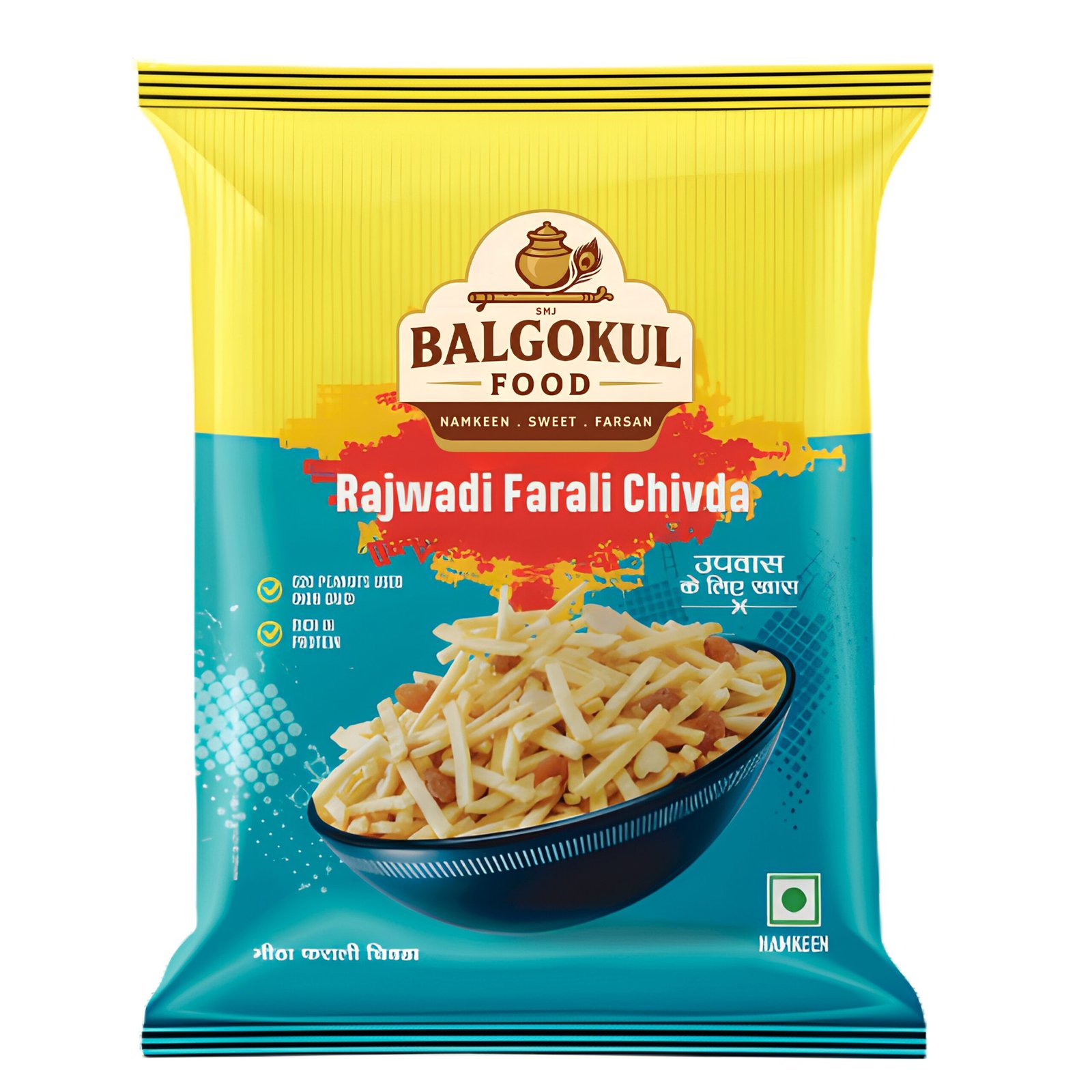 Prepared under hygienic conditions and 100% vegetarian, this product reflects BalGokul Foods’ commitment to quality, consistency, and trusted taste. Ideal for fasting days, festive occasions, or light snacking, Rajwadi Farali Chivda offers satisfying taste without compromising religious preferences.