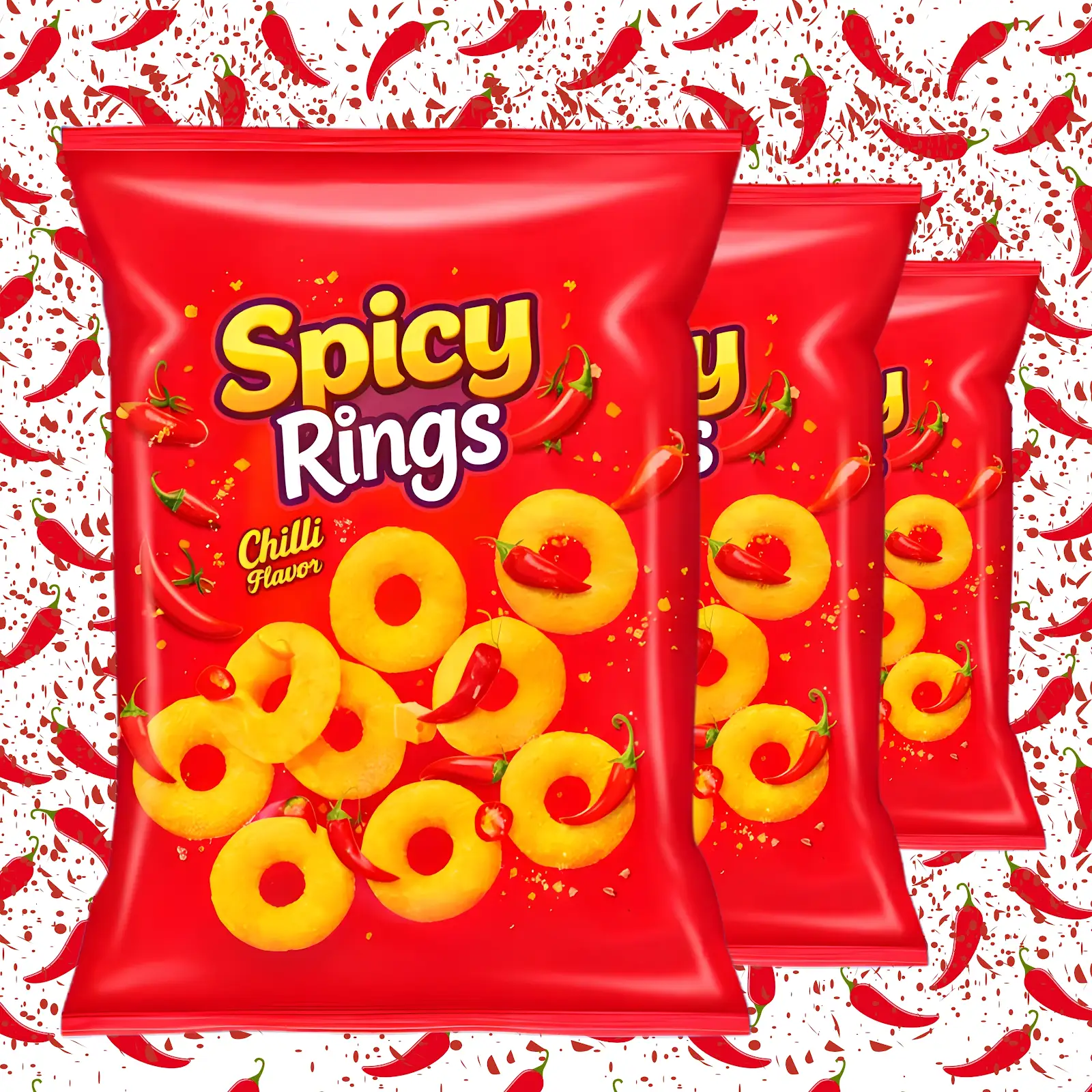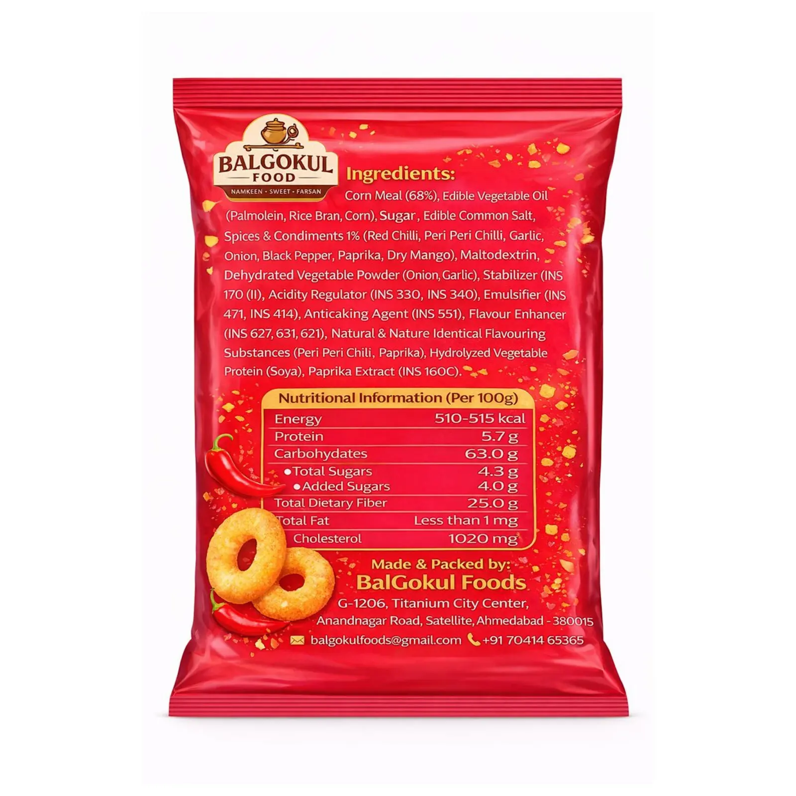 Enjoy an intense burst of heat with BalGokul Foods Spicy Rings (Chilli Flavour).