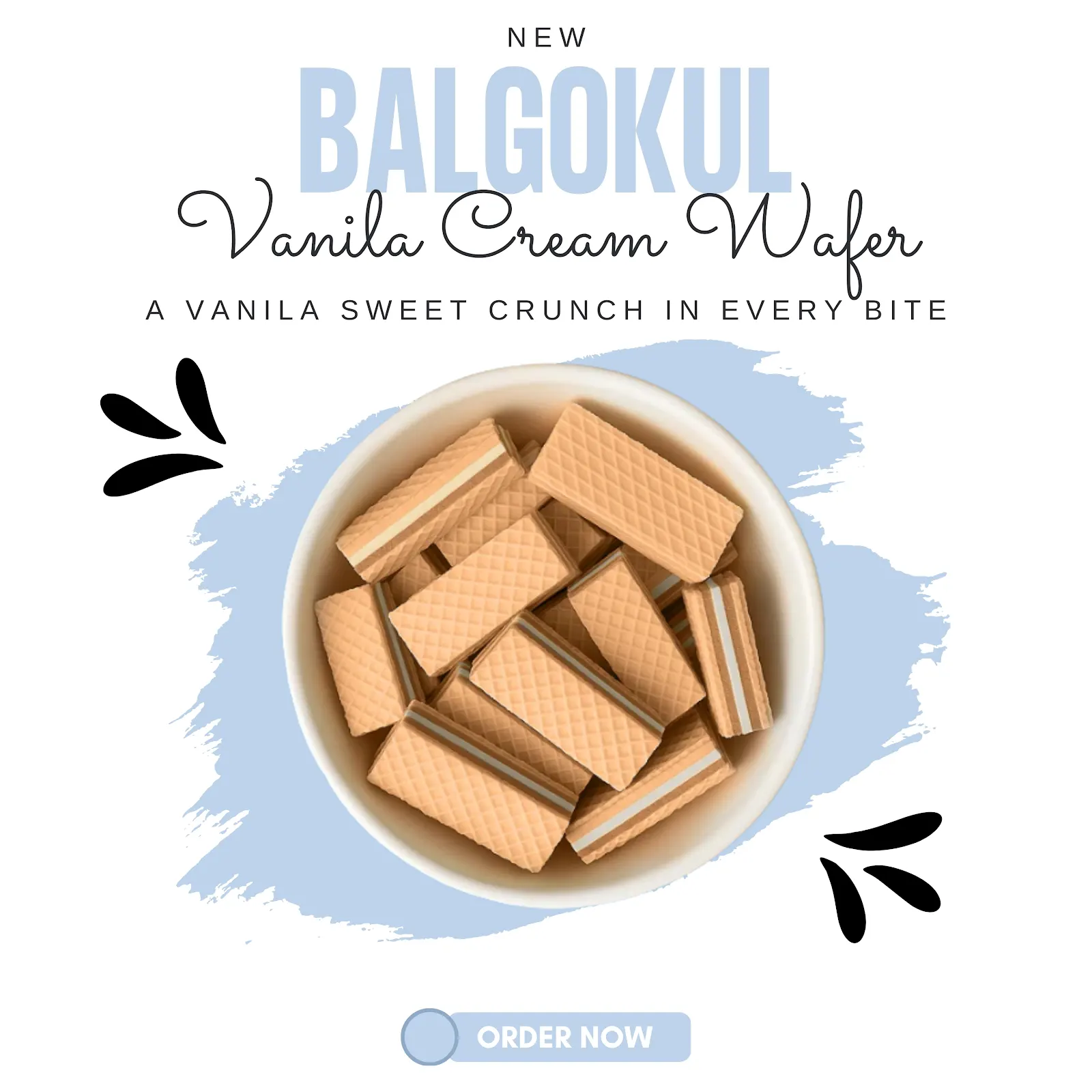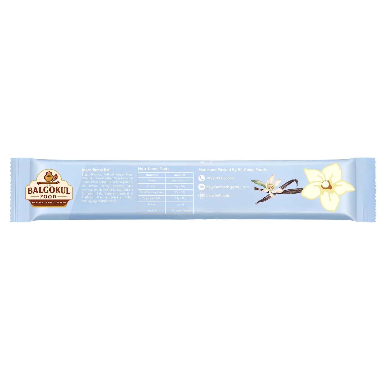 BalGokul Foods Sweet Vanilla Cream Wafers offer perfectly baked wafer sheets layered with rich vanilla-flavoured cream. The classic vanilla taste, combined with a crunchy texture, makes it an ideal snack for tea-time, travel, school breaks, and everyday cravings. Hygienically packed to retain freshness and crunch.
