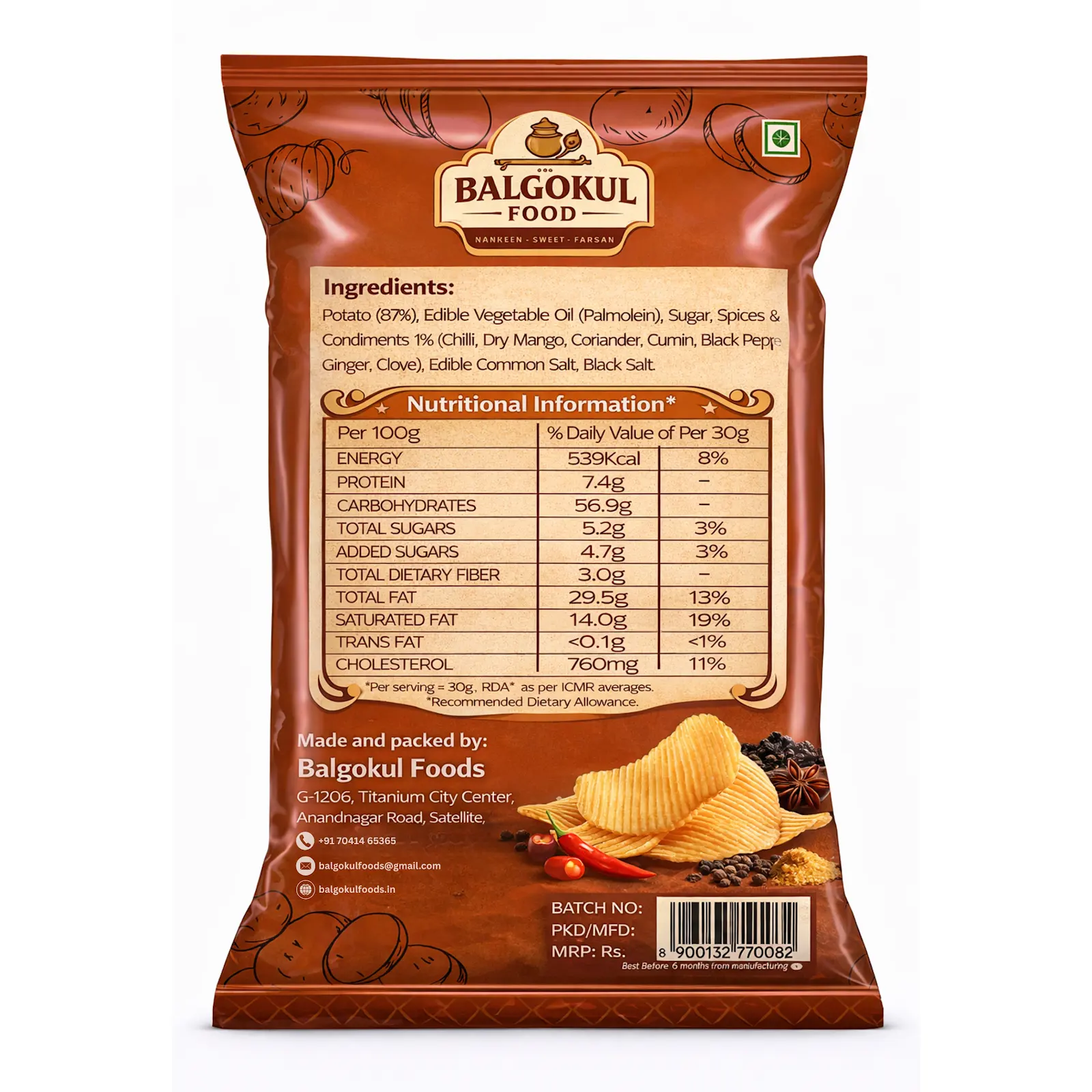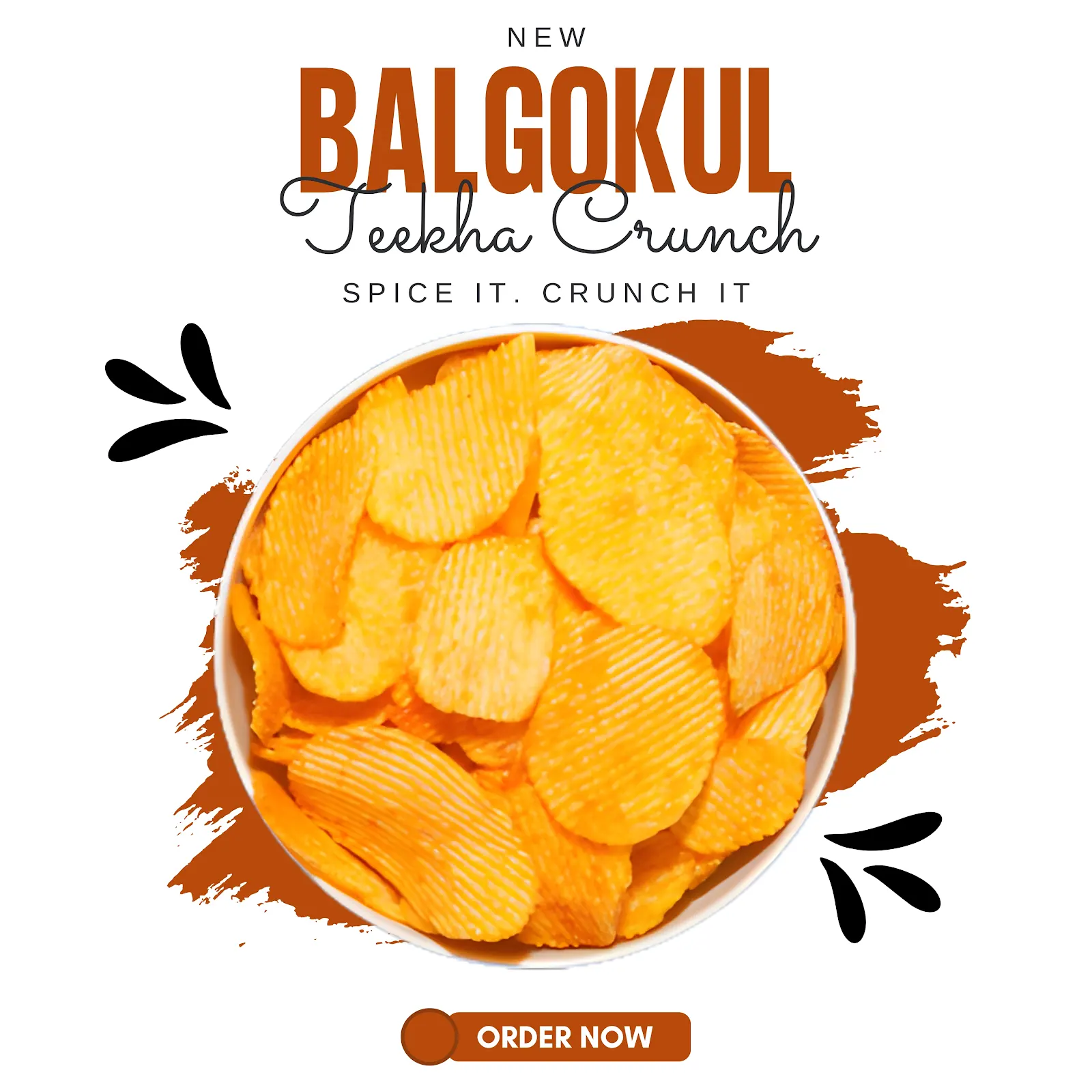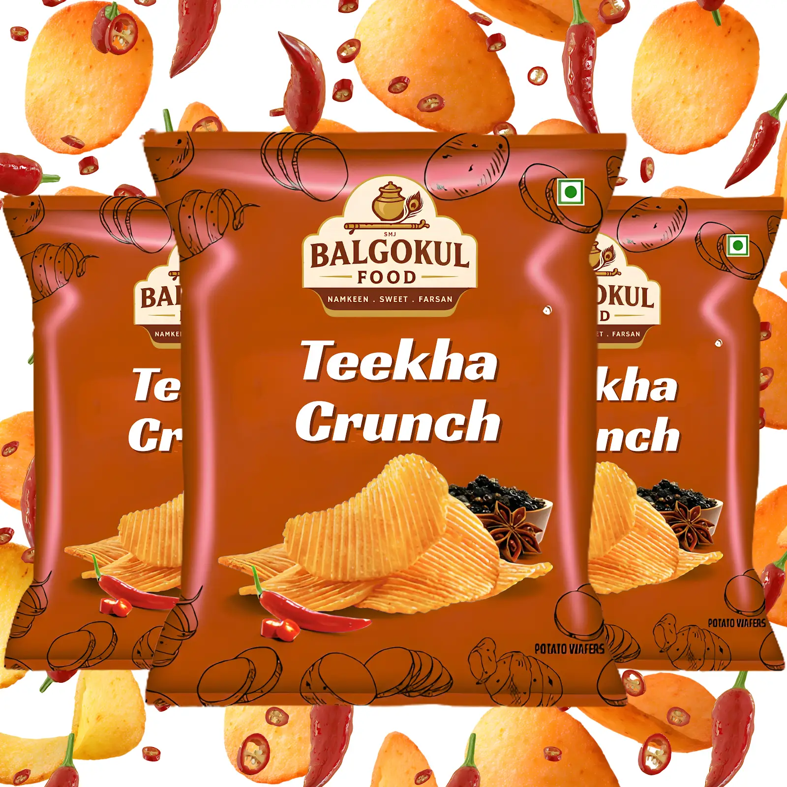 Experience the bold and spicy taste of tradition with BalGokul Foods Teekha Crunch Wafer. Made from premium-quality potatoes and seasoned with a fiery blend of spices, these crunchy wafers deliver a perfect balance of heat, flavor, and crisp texture in every bite.